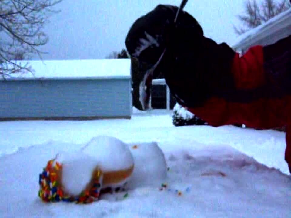A young boy throws snowballs at another young boy in a red coat but repeatedly misses outside in the winter snow.
