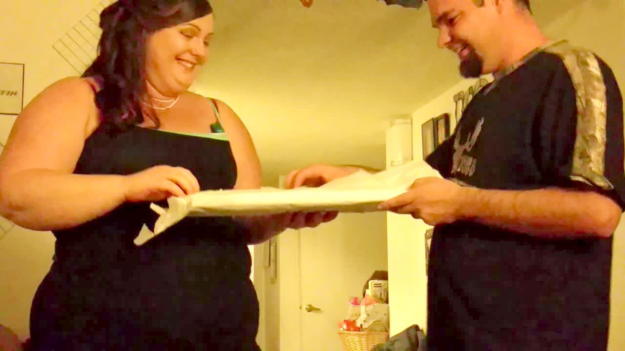 A woman tries to help her teenage granddaughter practice a backflip in the living-room but she accidentally kicks the woman in the face.