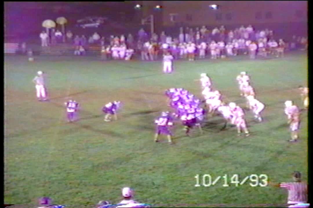 Teen girl runs across a white couch into a lounge chair to catch a soccer ball. The ball hits her stomach while she jumps, knocking her behind the chair into the corner of the room.