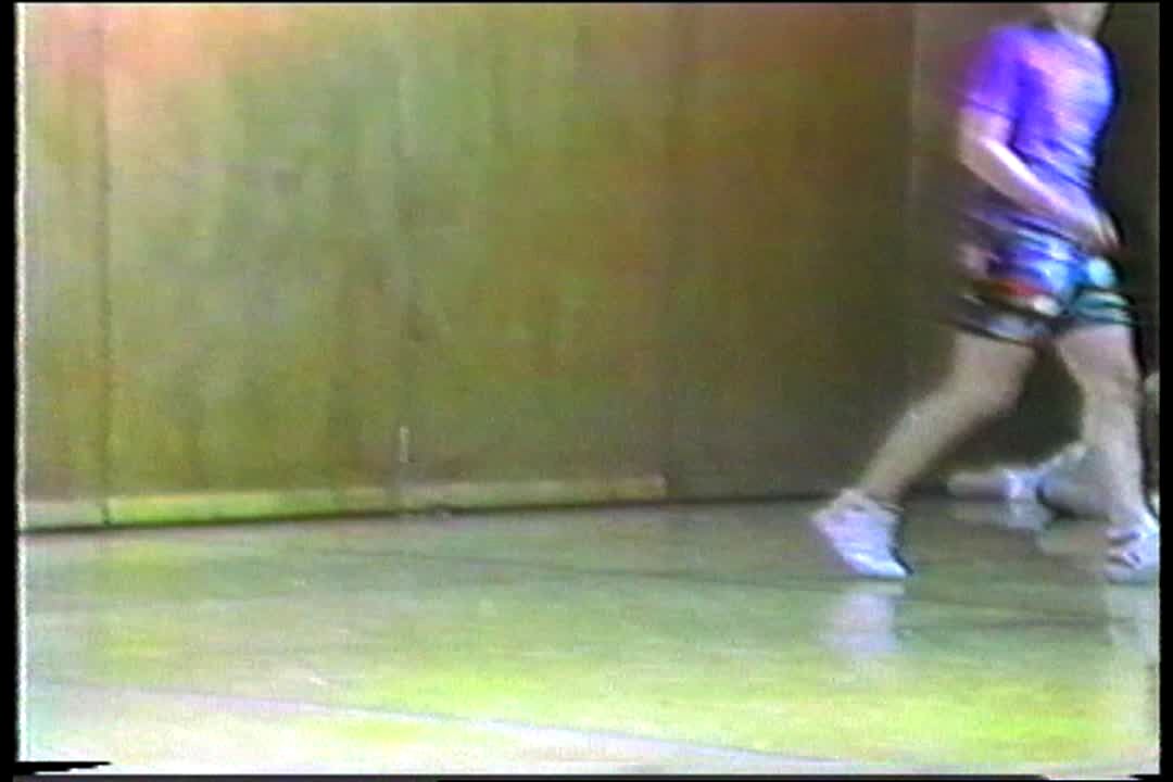 Teen boy tries to jump hurdles in the gym, he hits himself in the groin. Crotch.