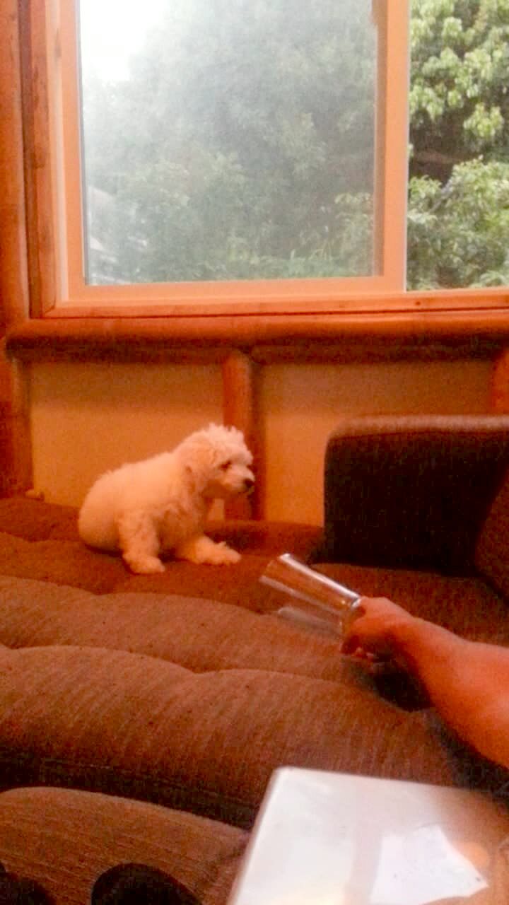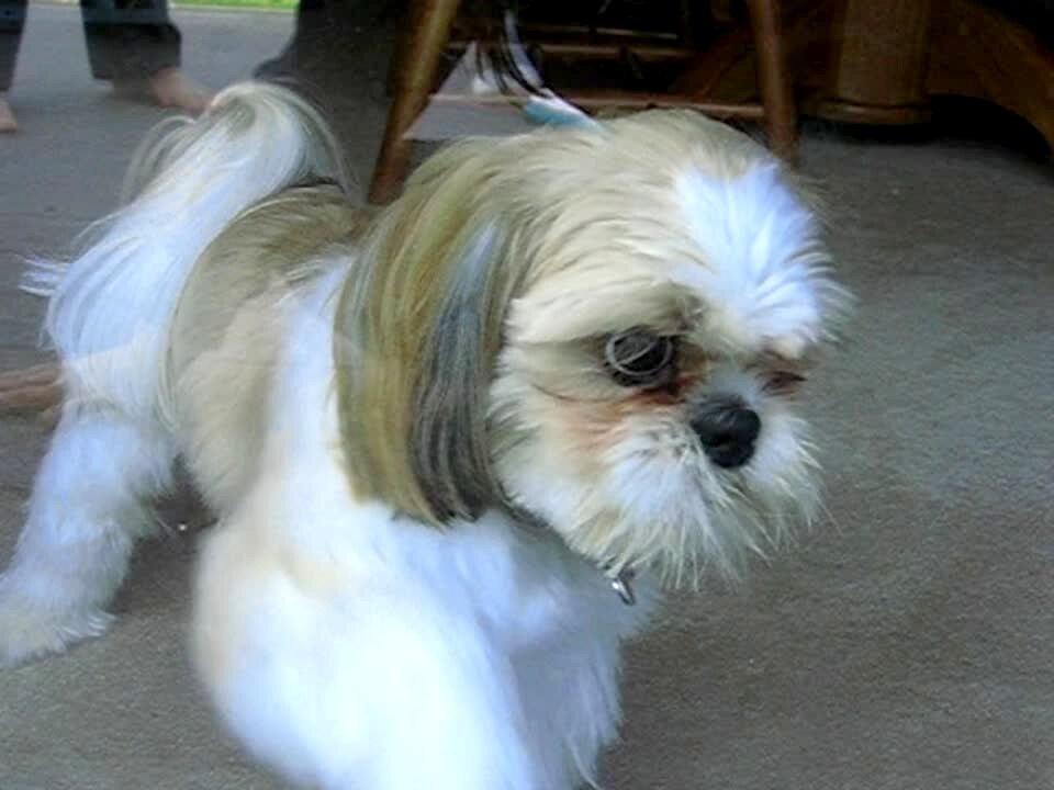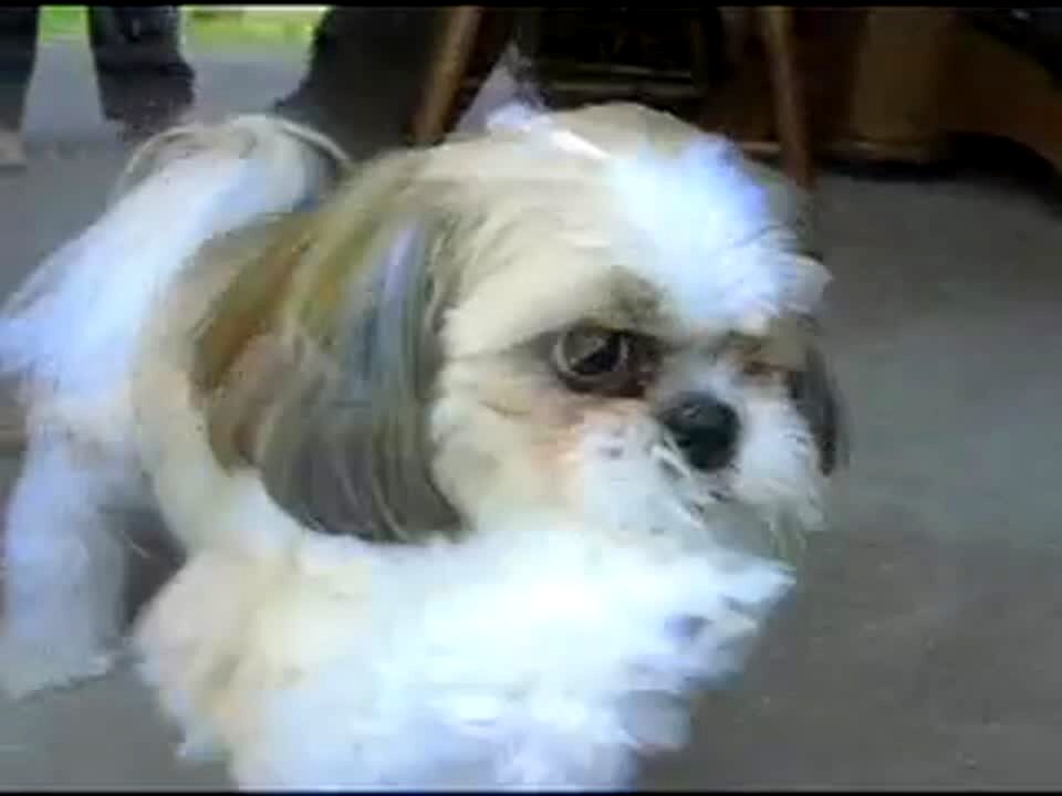 Small dog has freakishly long tongue when it licks things or lets it hang in the air. Funny visual.