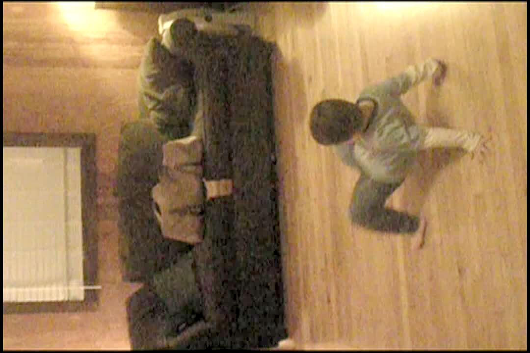 A series of clips where a man lip syncs while a tot boy yells and talks nonsense in the living room.