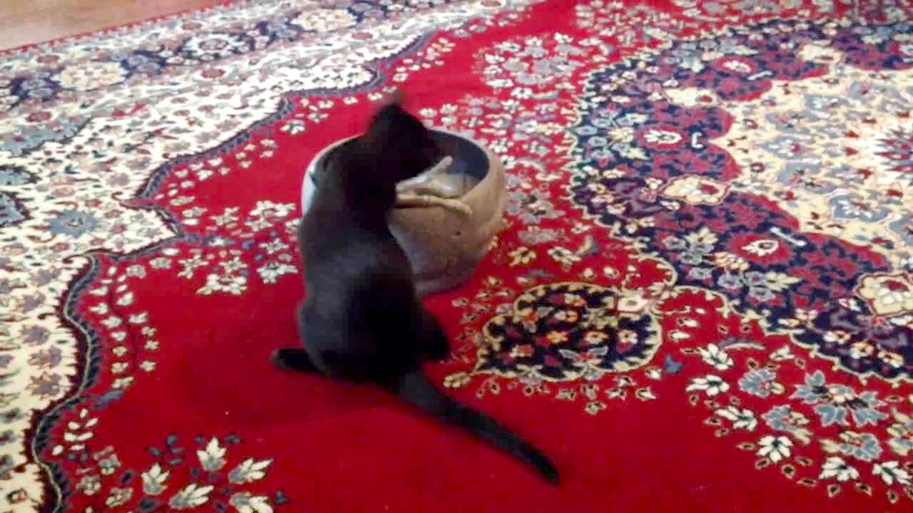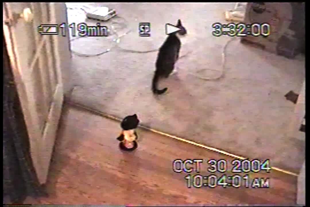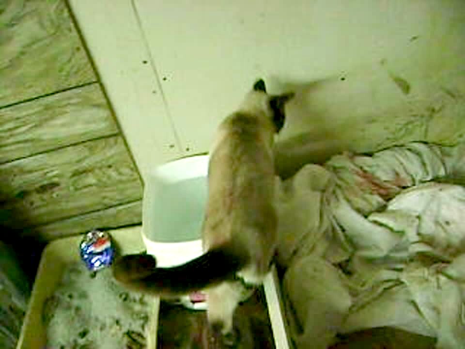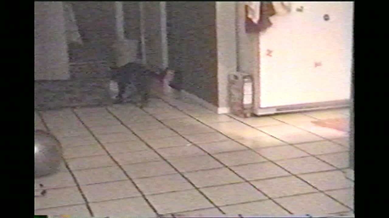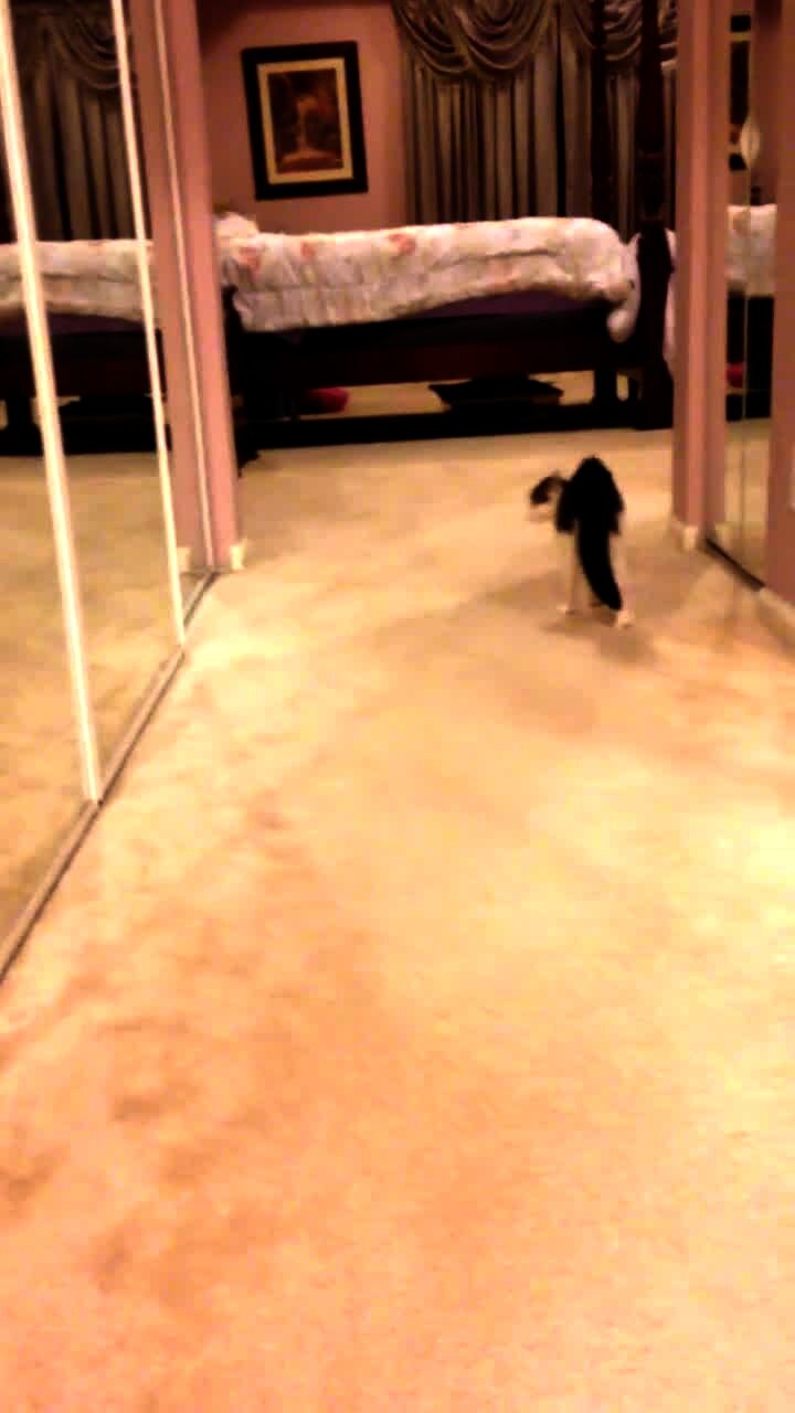 STRING TAIL CAT Cat scared by a string caught on tail - he jumps around wildly