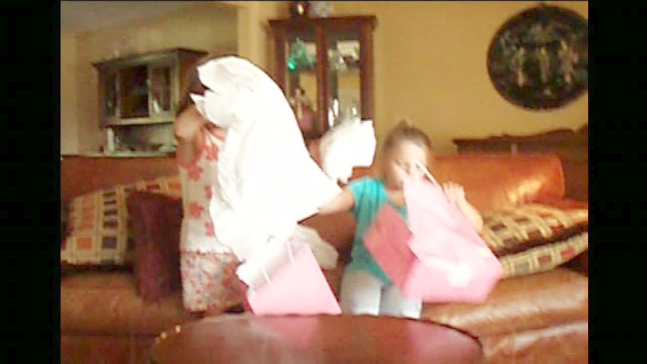 Girls open a package that tells them their mom is pregnant, they get excited.