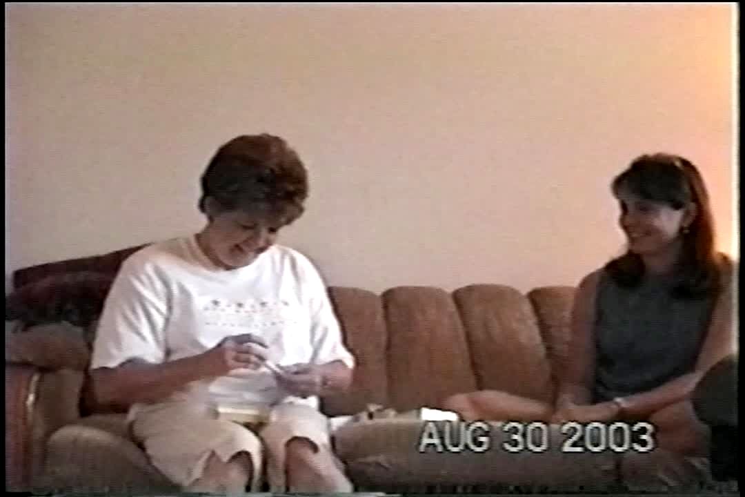A woman gives her mom a birthday present and tells her that she is pregnant. Her mom screams repeatedly and jumps up and down.
