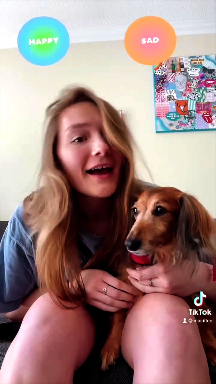 A woman gasps at a dog as it eats its bone. The dog looks up, startled. Gasp at Your Dog Challenge.