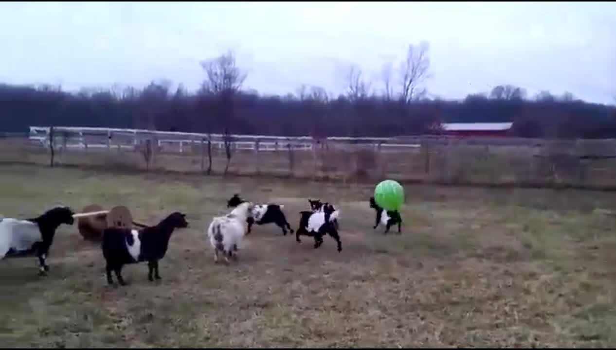 The camera holder kicks a ball that bounces off a house and hits a young girl in the back of the head.