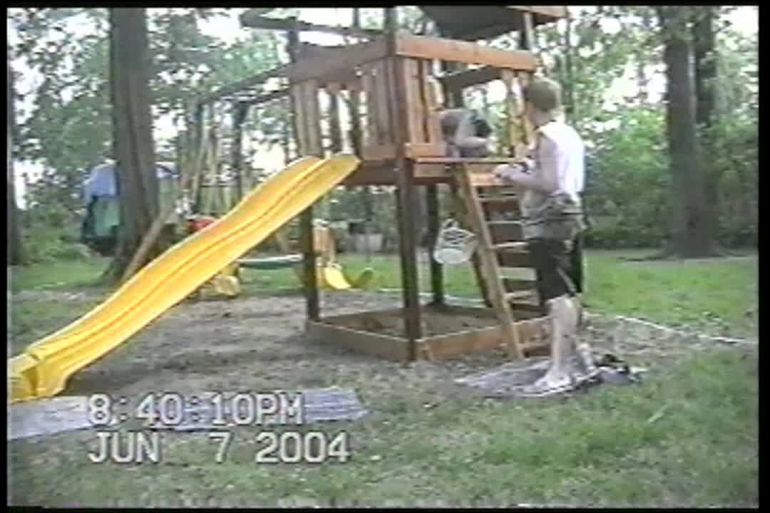 Teen boy slides down a playground slide on his feet, he slips and falls down, hitting his head hard on the slide. Boneheads.