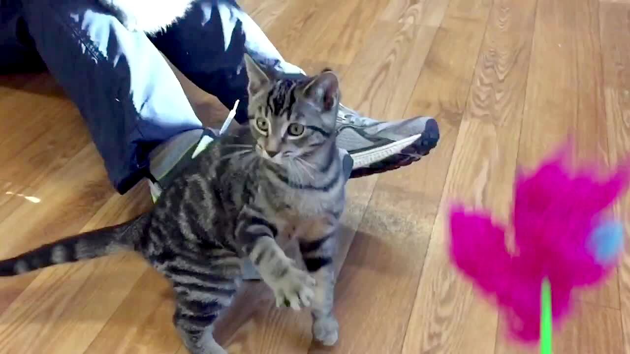 A man and woman get ready to cut a cake for a gender reveal and the woman smashes the cake in her husband's face and they find out they are having a girl in a house.