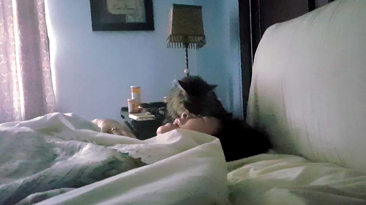 A teen girl scares her dad on various occasions and captures his startled yell that he lets out.