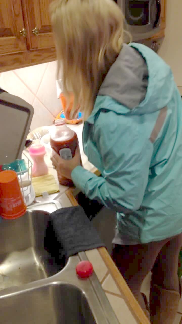 A tot boy tells his mother he wants tomato juice that she holds at home. She asks him if he is sure and the boy reassures her, but then gasps and says he does not like it when he tries it.