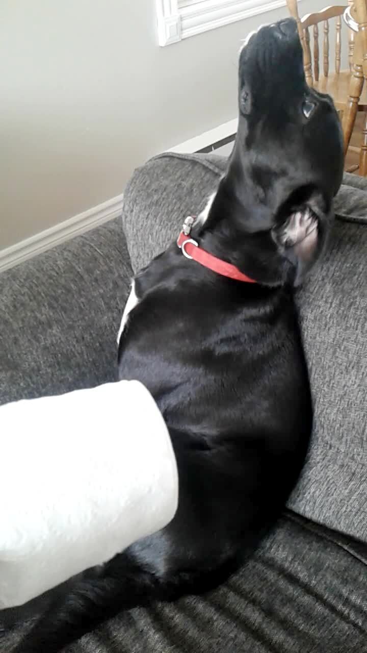 A tot girl says "When I grow up I'm going to be a slide" and a woman off-camera tells her to show how she would be a slide. The girl leans against a couch and she bends backwards into a slide shape. Snapchat video, Graphic text added. Living room