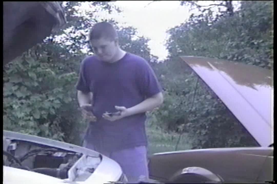 Boy accidentally shocks himself when demonstrating how to jump-start car.