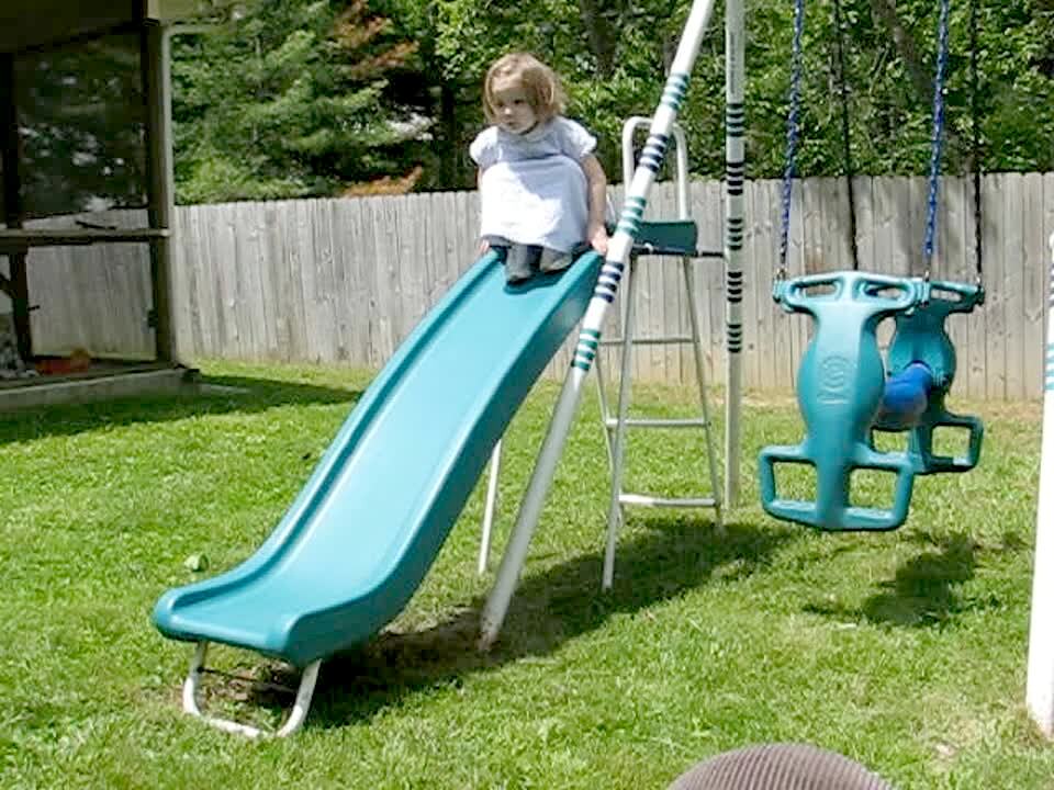 A teen girl does a handstand next to an upside down snowman and it falls over at the same time. In Synch