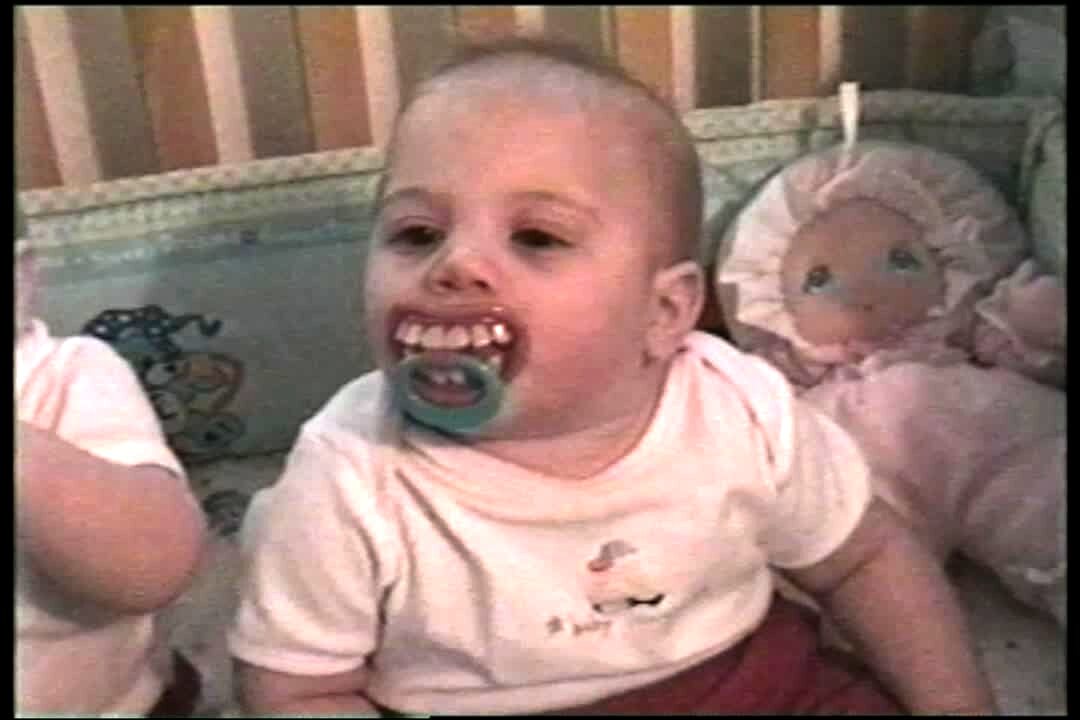 A mother encourages her toddler to kiss her older daughter. The older girl screams when her baby sister sneezes on her face repeatedly.