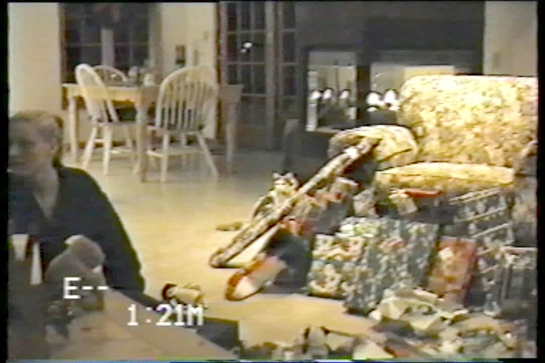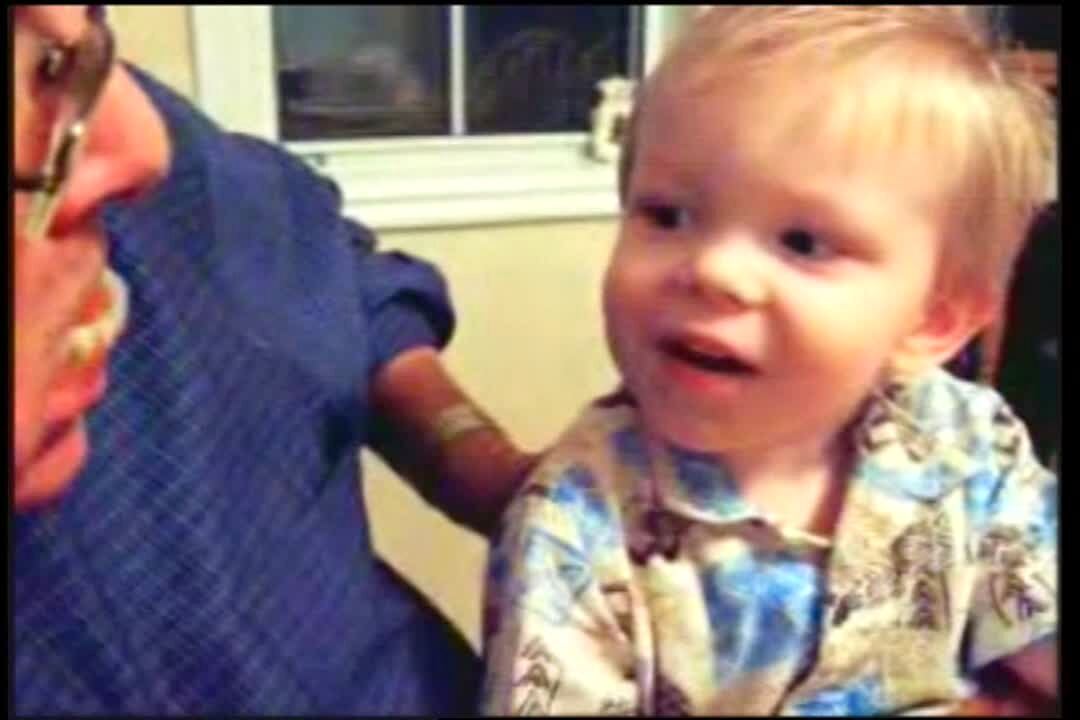 A tot boy opens a Christmas present indoors and finds a Barbie doll. He looks at it and throws it. His grandpa tries to get him to take a picture with it and he throws it again.