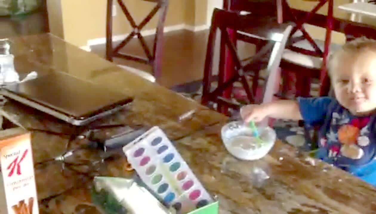 Tot boy wants cookie, parents tell him not yet. Boy steals / takes a cookie in his mouth & runs away, dad catches him on hidden camera. Denies he took cookie. Sneaky.