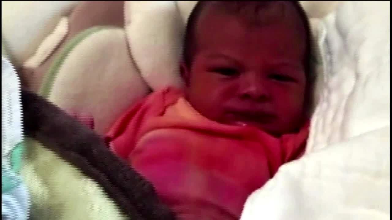 A baby boy vomits through his mouth and both nostrils. Unbelievably gross.