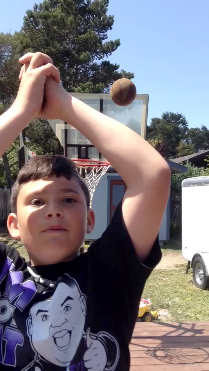 A boy drops a football against the ground repeatedly. VIN DI BONA'S GRANDSON SAM
