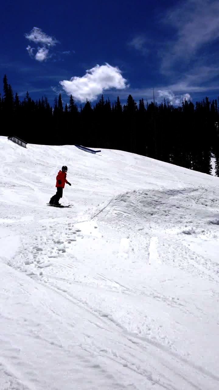 Teen boy tries to snowboard down a hill and across a railing. He falls and breaks a board. Short tail.