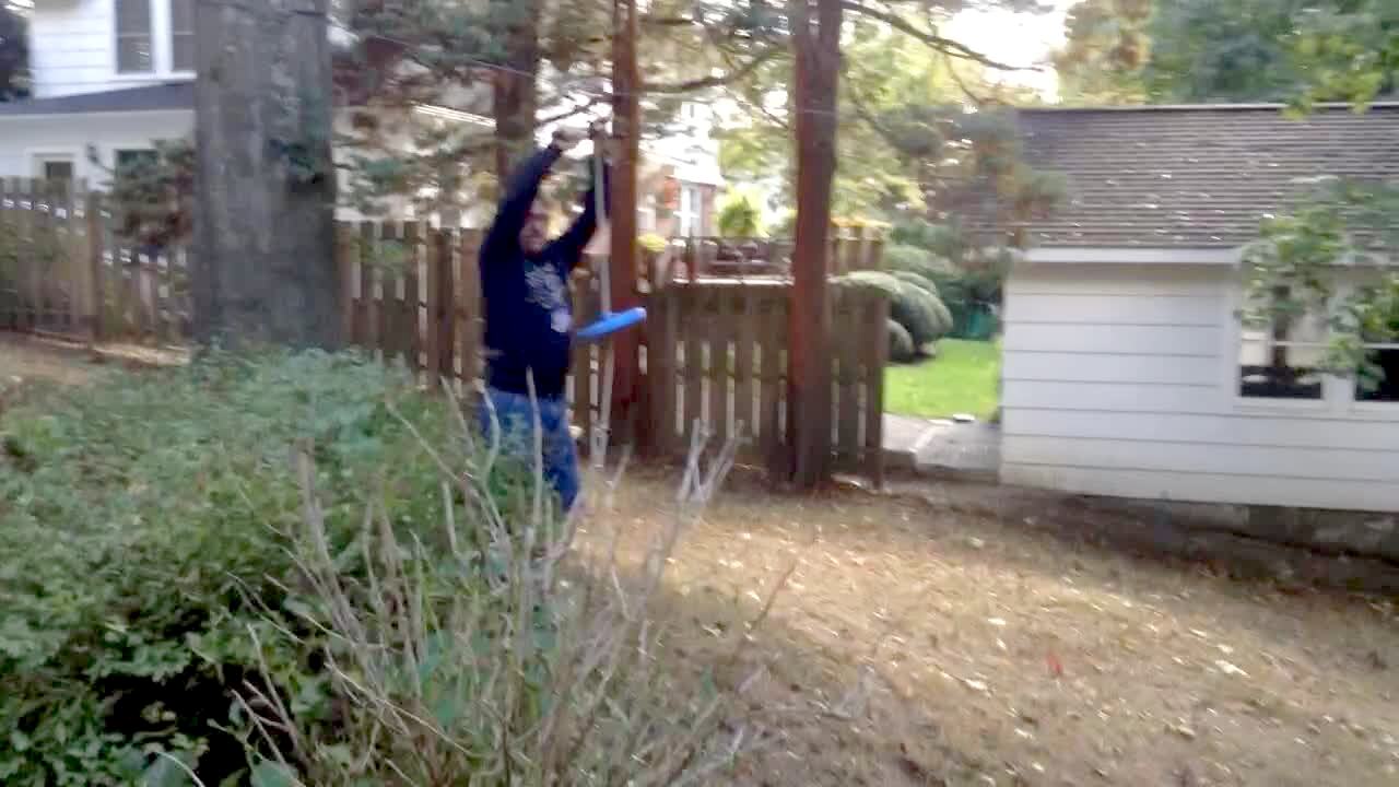 Man jumps rope, then falls into tree