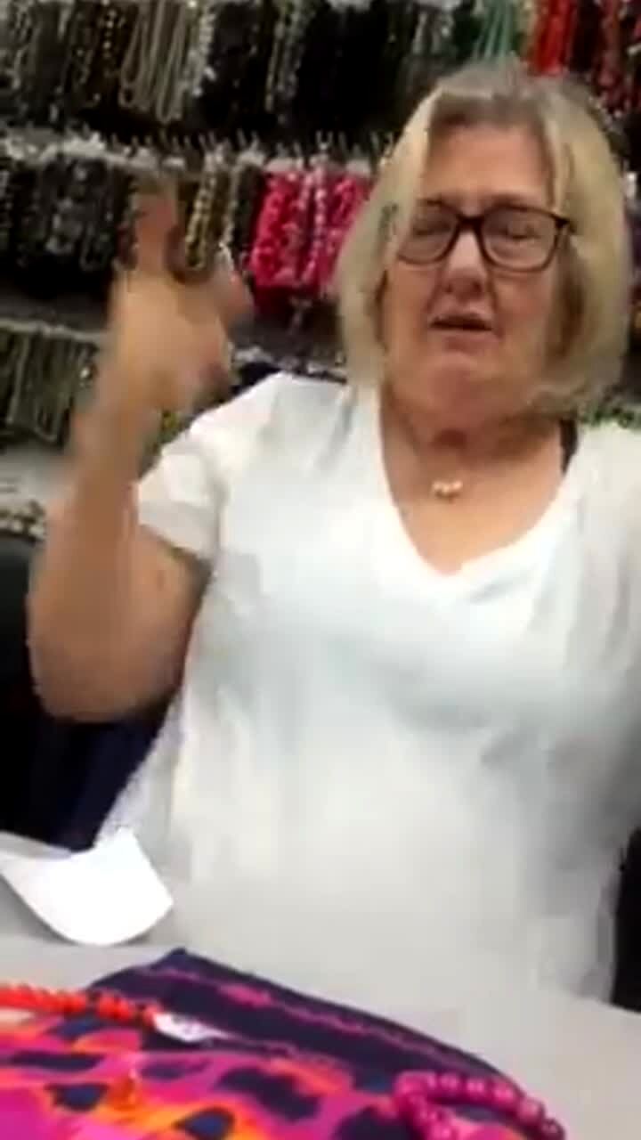 Woman pushes practical joke pen & gets shocked. She screams & throws pen.