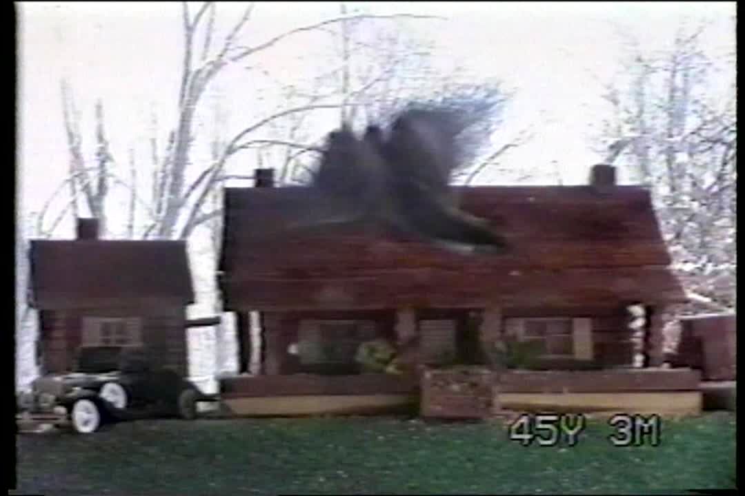 Giant bird lands on miniature house