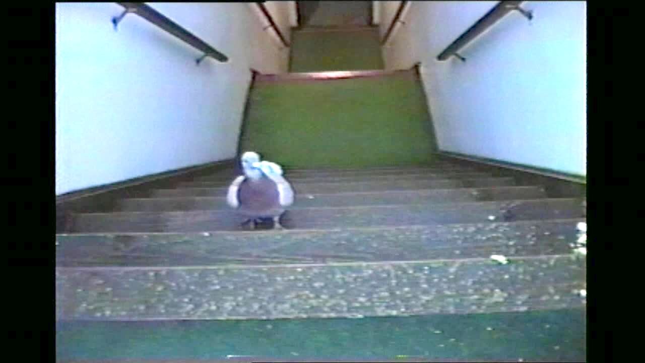 Pigeon Toed. Pigeon hops down stairs. Bird. (talk about odd!)
