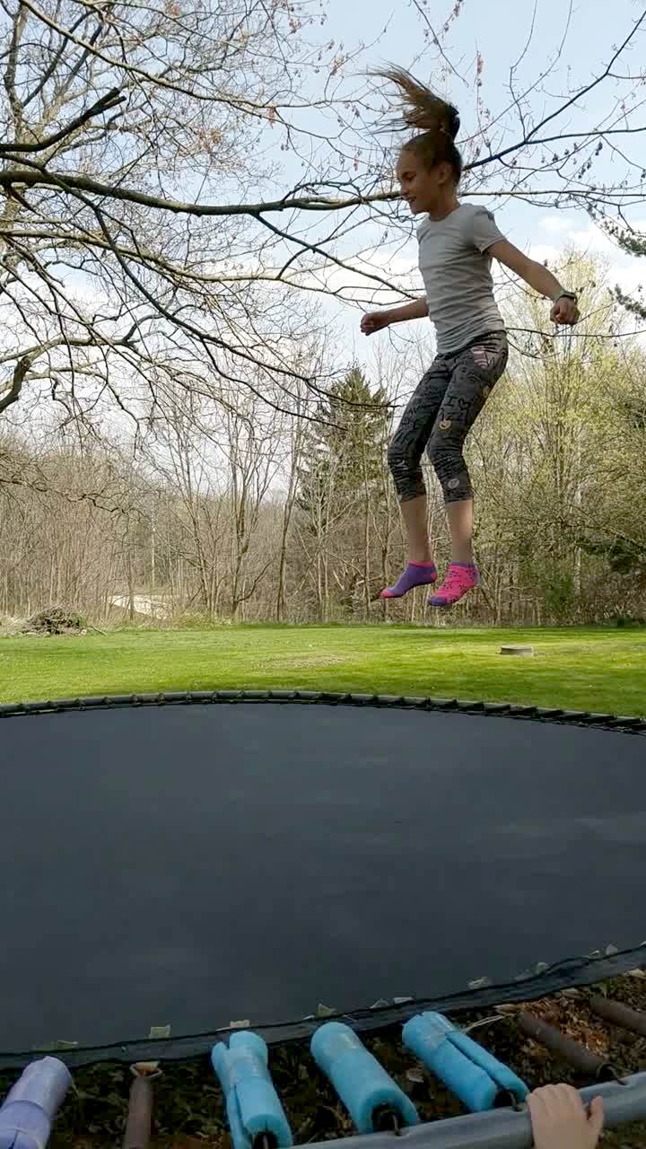 A woman who rolls a trashcan down the driveway and then trips and falls. Security footage.