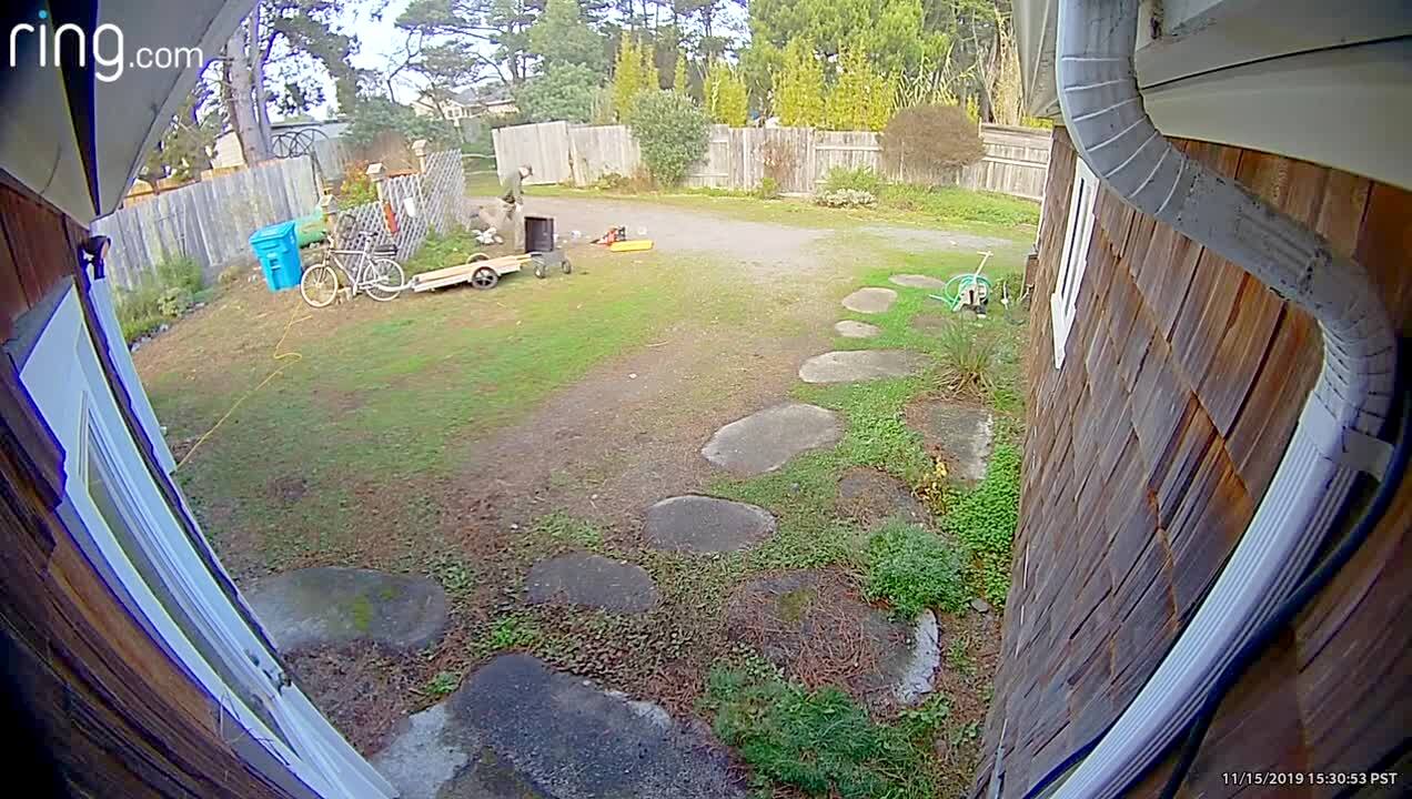 A man pretends he has a real mouse under a bucket on the porch and needs help sweeping it outside. The other man is pranked when he lifts the bucket and sees its a computer mouse.