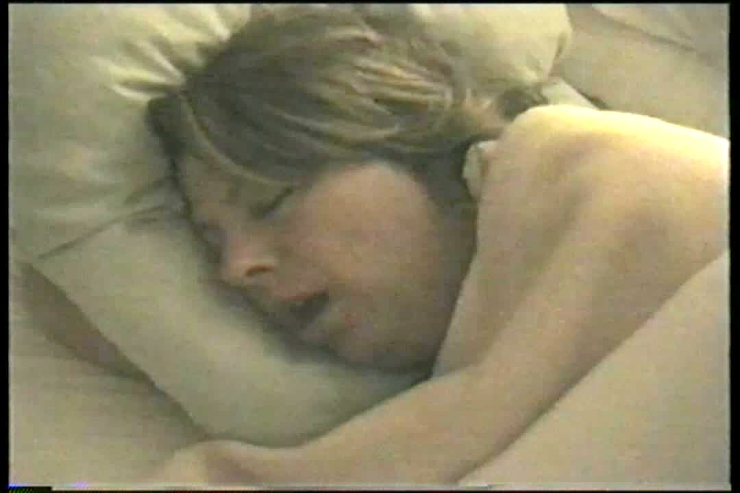 Sleeping woman snores. Wakes up and is scared by the camera.