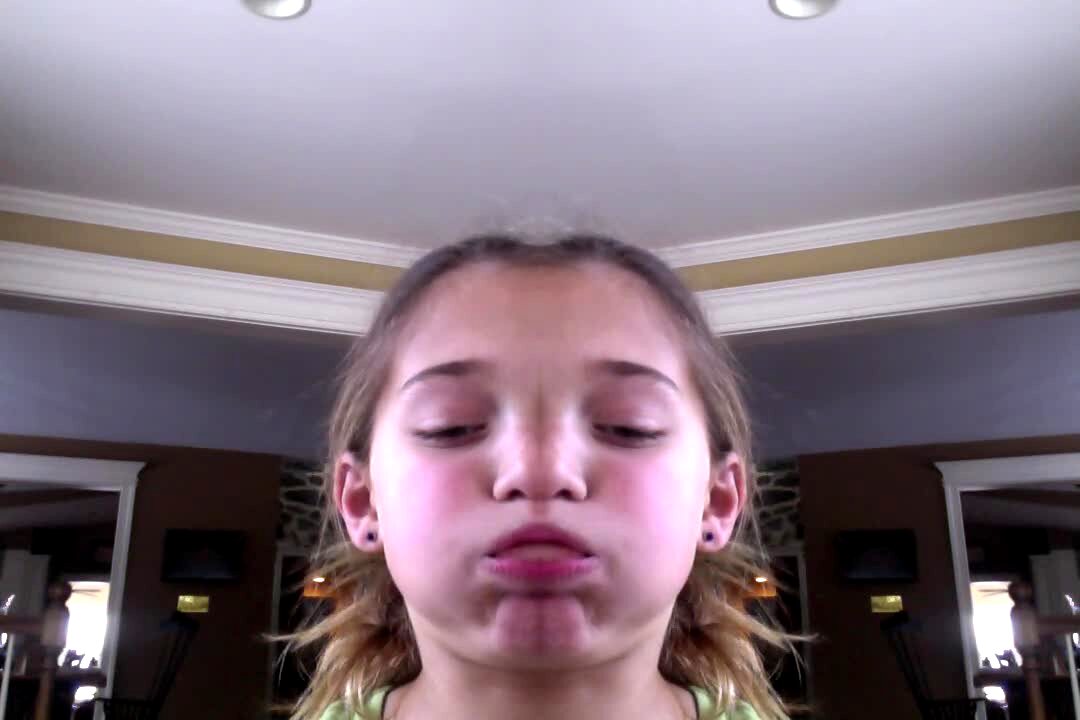 Kid (girl) walks into camera, hits lens, makes weird face.