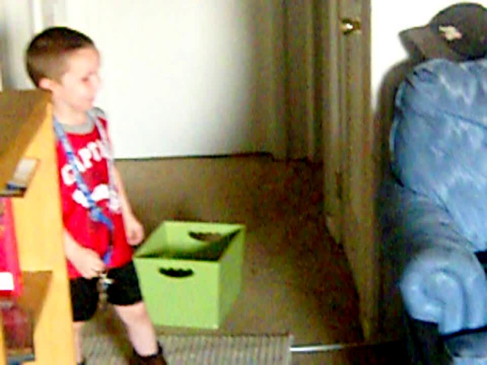 Man scares boy by running into the living room wearing a monster mask. Boy screams. Halloween. No recovery.