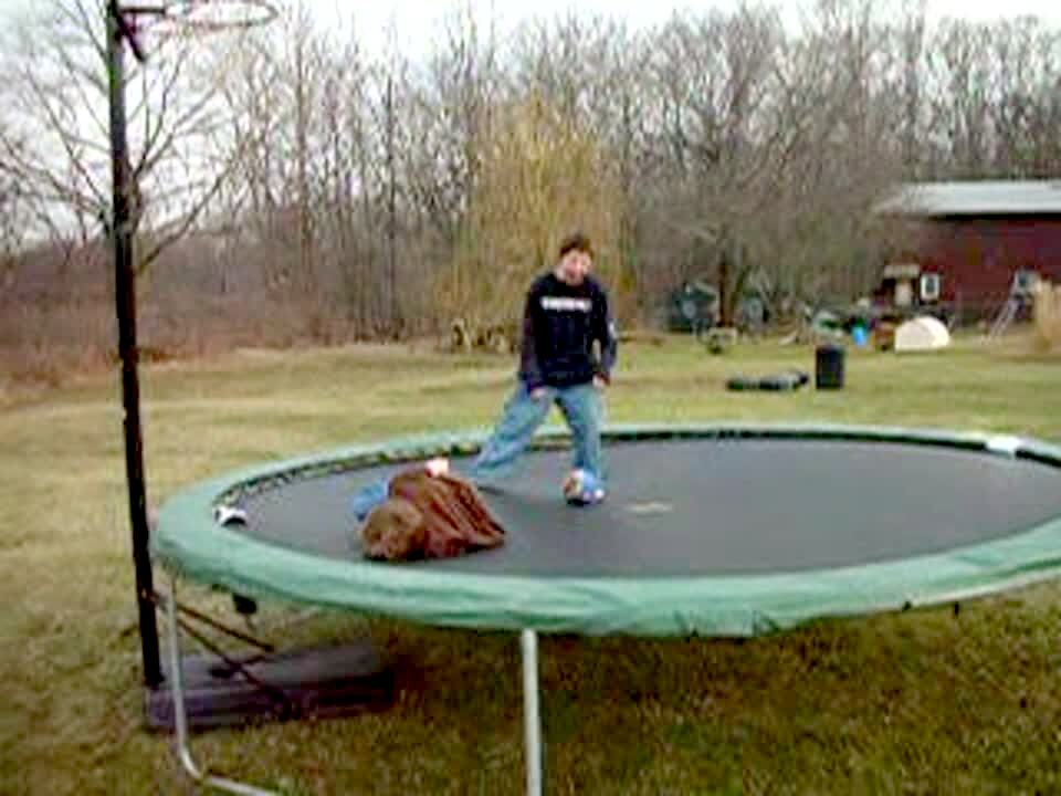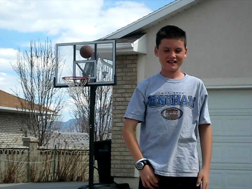 A teen boy does a trick shot on a door hoop in his bedroom, and then he acts like he is cool and shoots the ball over his shoulder, but the ball hits a mirror on his dresser and breaks it.