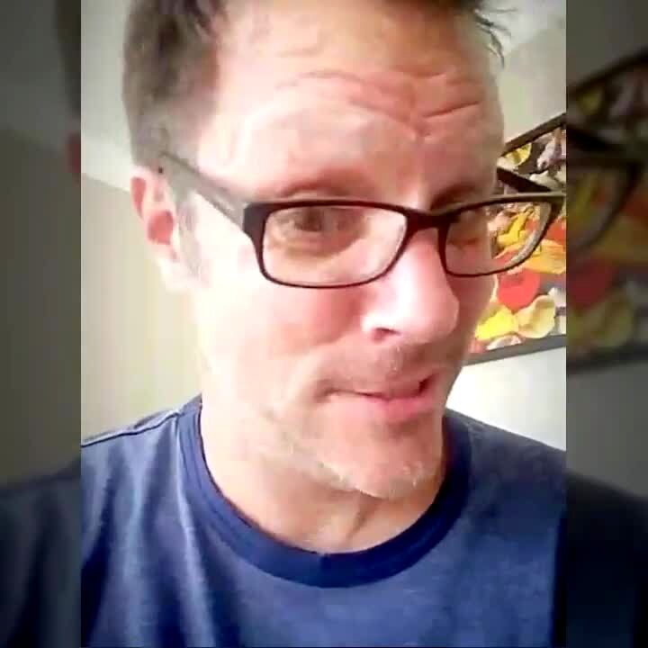 A young man sings along to a Prince song as he cleans a bathroom indoors. He sees his dad filming and screams. Scare.