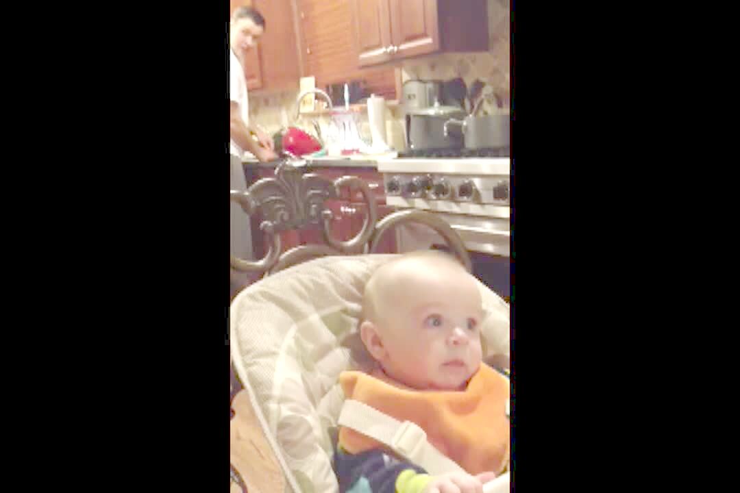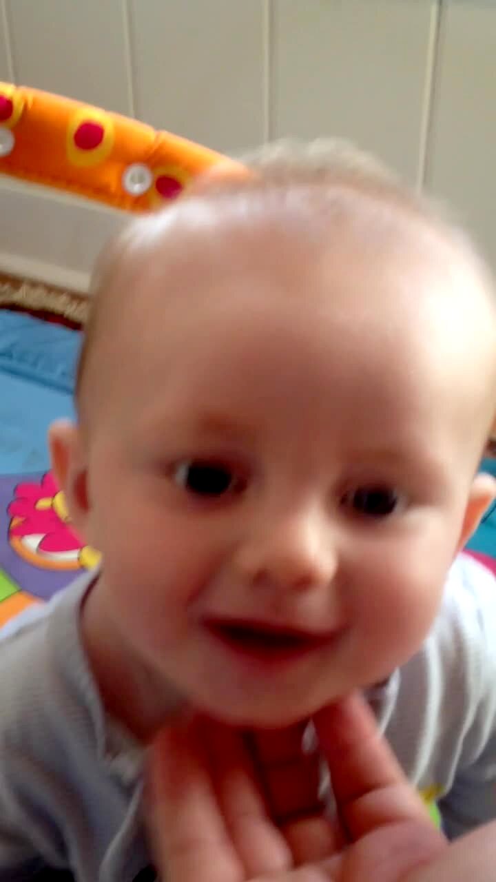 Baby boy has unusual rapid fire laugh. Makes adults laugh off camera.