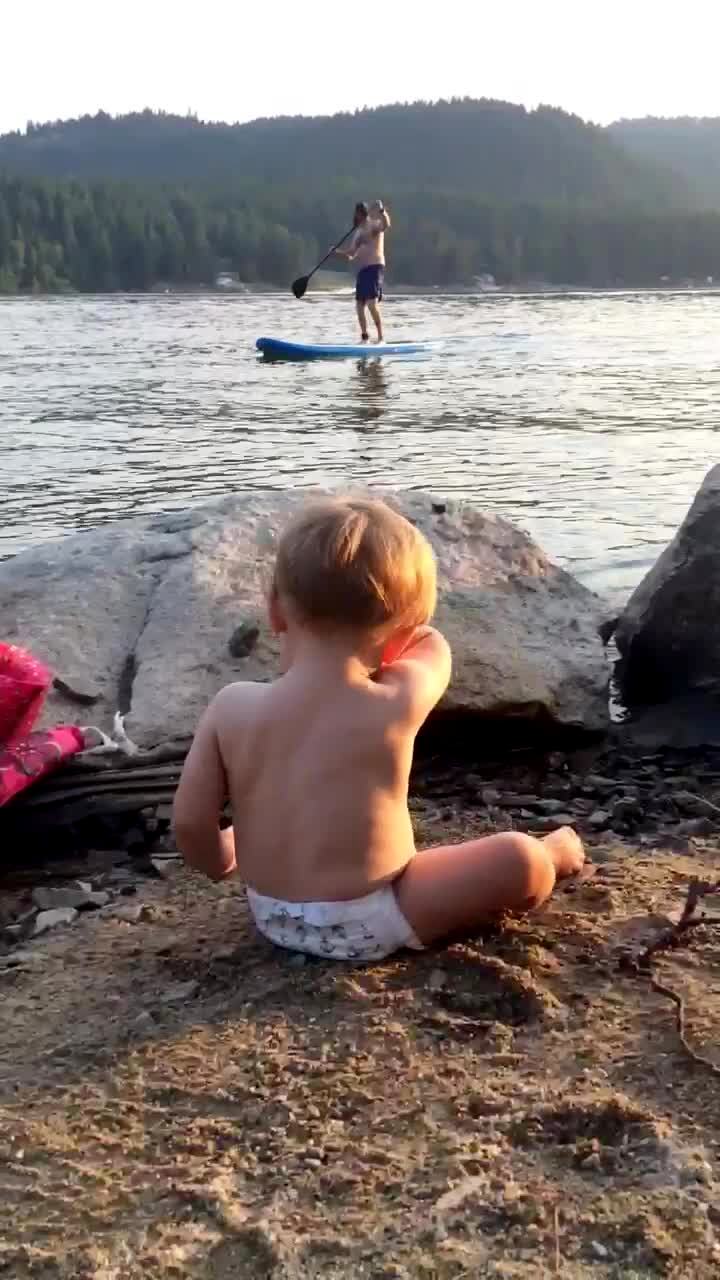 A baby boy stands on a fat shaking machine. His entire body jiggles and he makes an "ahhhhhhhhhhh" sound. His voice vibrates. Exercise equipment.