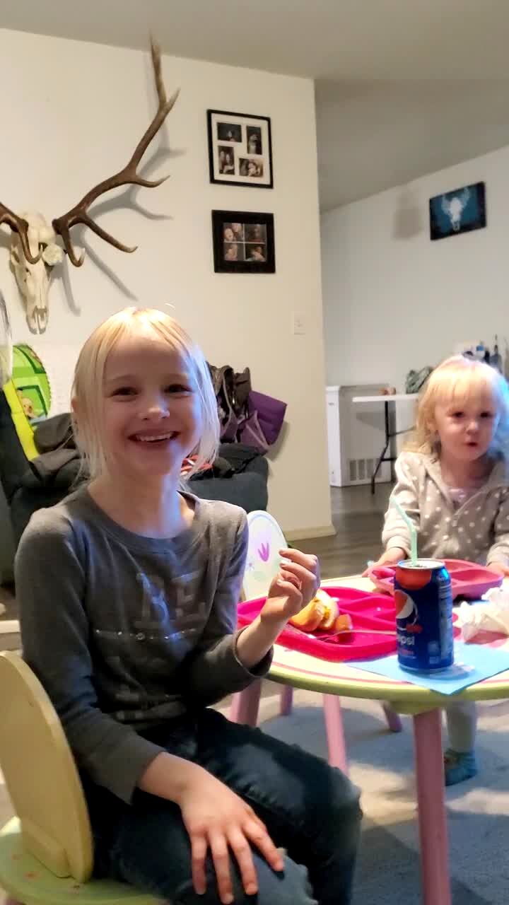 A young girl on a living room yells at Alexa to play Baby Shark. Her mother holding the camera tells her they don't have Alexa and the girl looks confused.