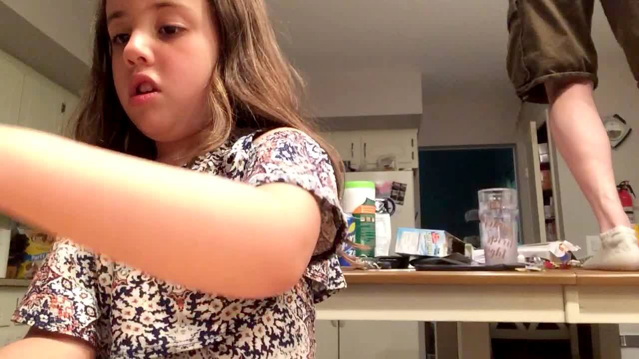 A young girl falls when she does a trust fall in the wrong direction after her teen sister blindfolds her for the fall in their living room.