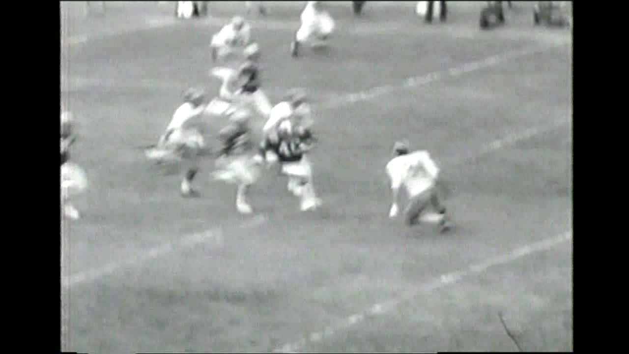 Dog chases football player running down sideline for a touchdown