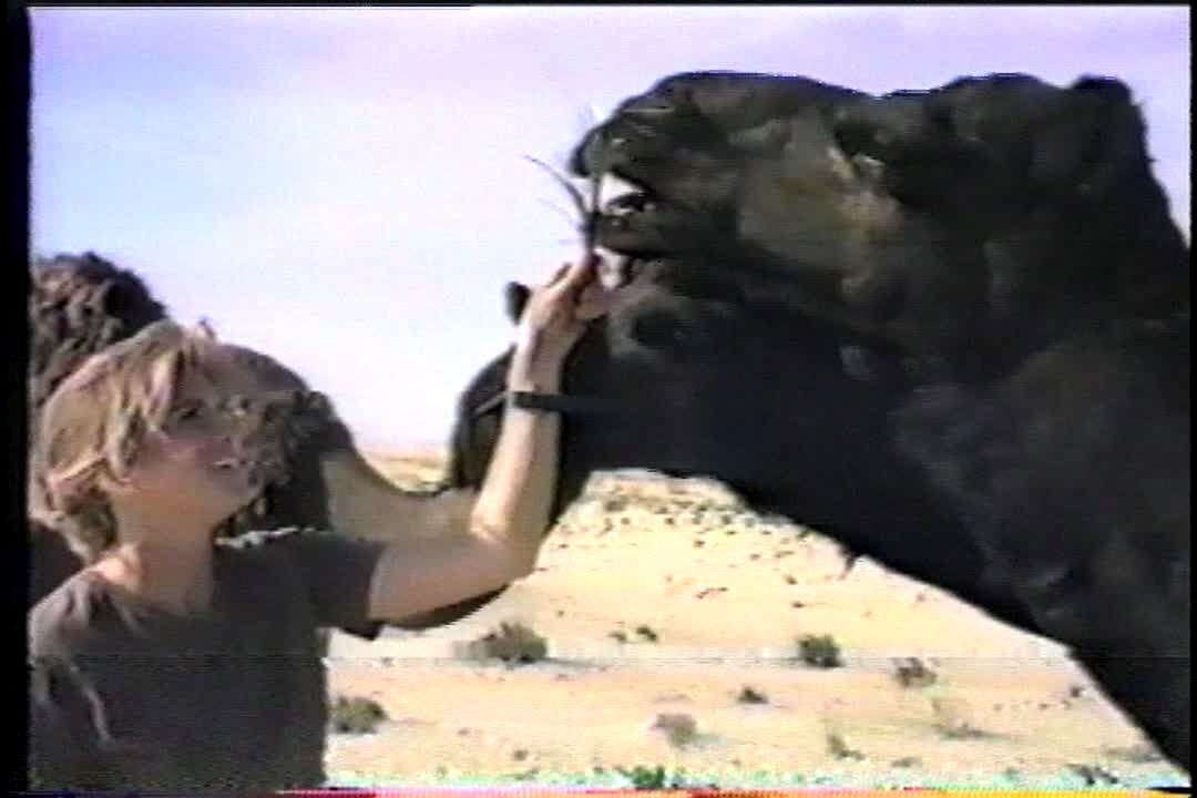 A camel tries to eat a woman's wedding ring in a drive-thru safari.