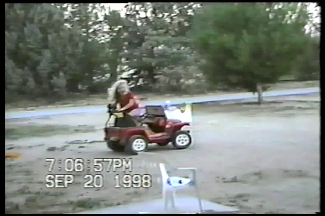 Tot girl falls out of Power Wheels when it goes forward.