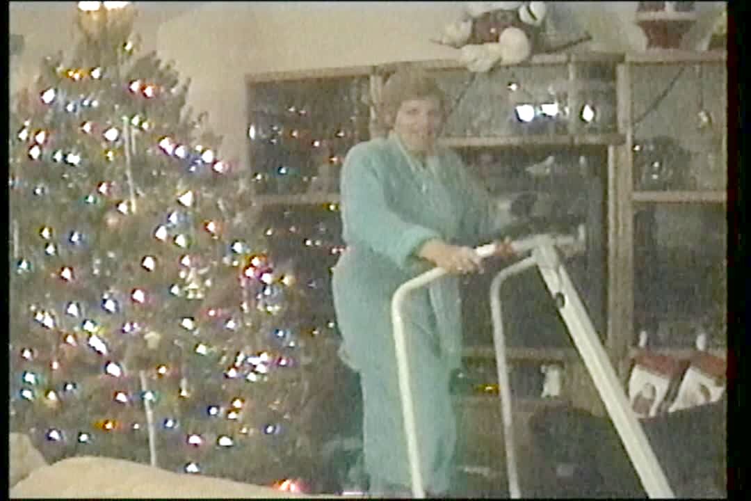 "Treadmill Trauma" Older woman on treadmill falls off, crashes into Christmas tree.