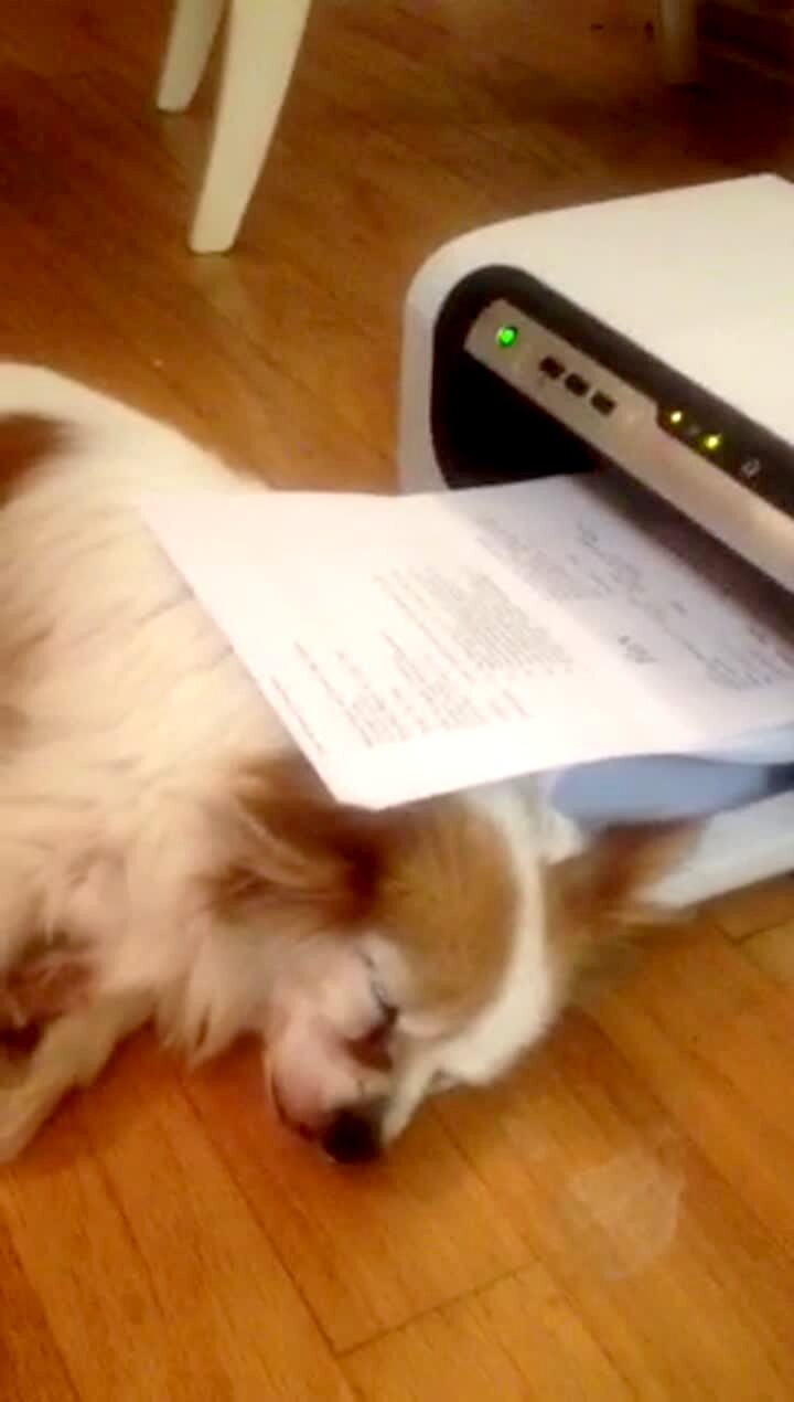 A sleeping dog is covered in envelopes and when asked to go outside, he perks up and the envelops fall off of him.