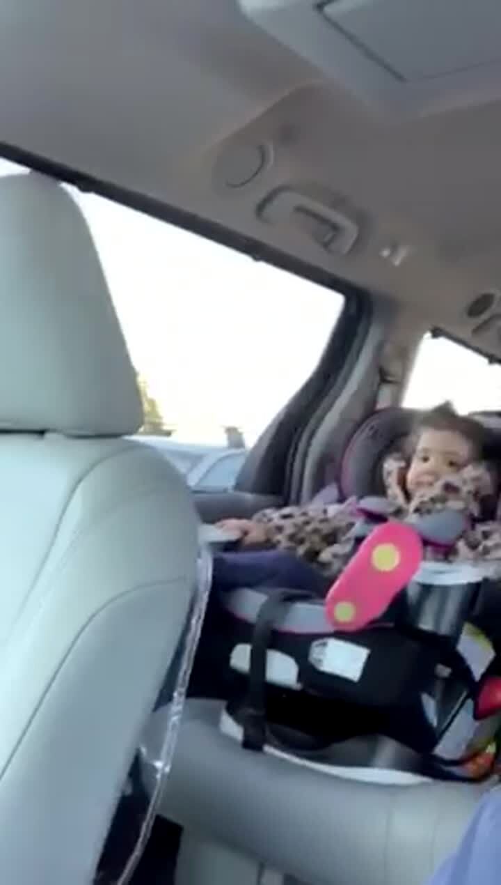 A tot girl in a car yells that she is a princess and her twin sister wags her finger and says she's not a princess.