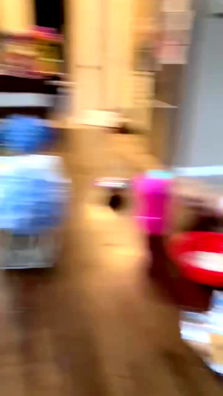 A tot girl tries to sing a song in the kitchen but her younger sister sings over her and she cries.