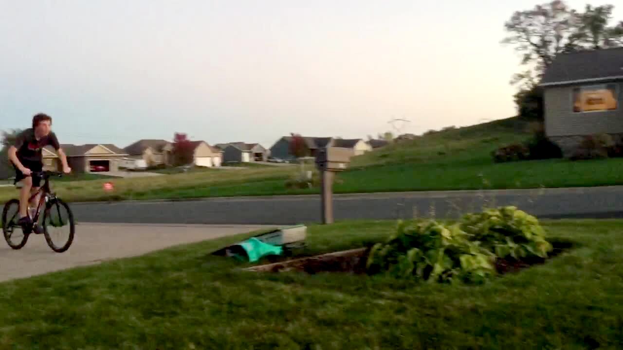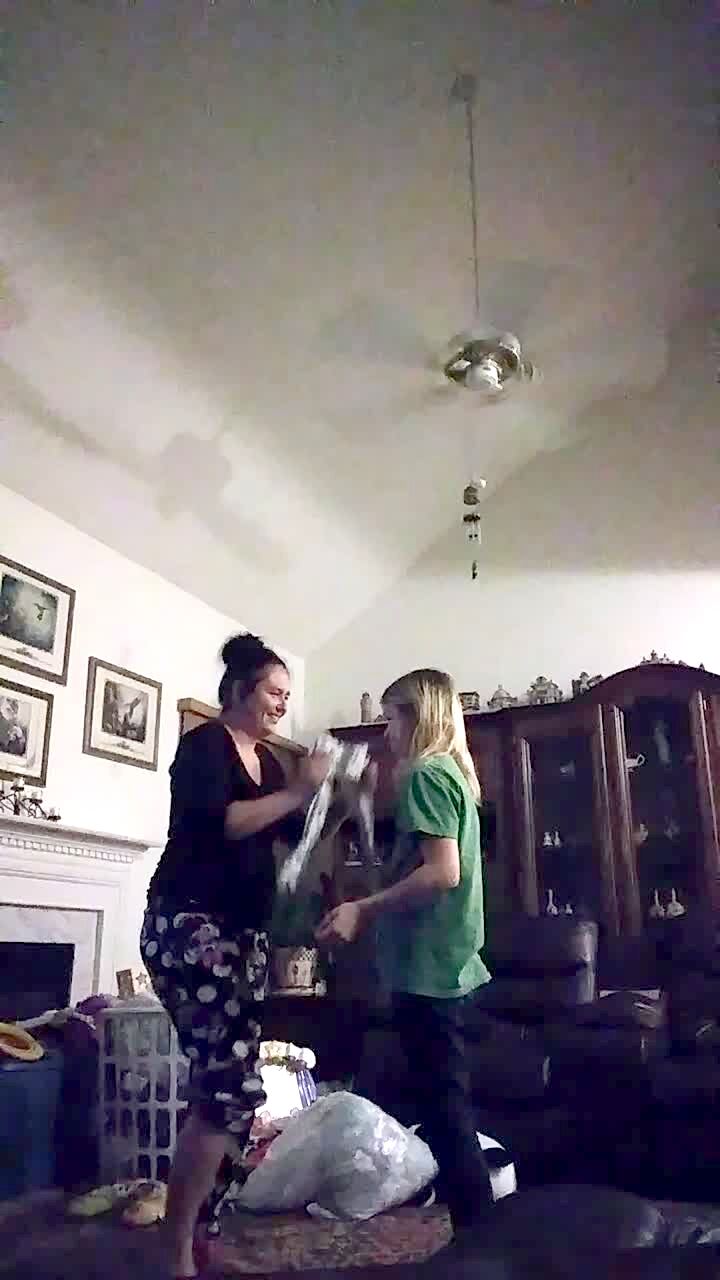A baby boy repeatedly falls over on a bed whenever his mother says, "Good Morning".