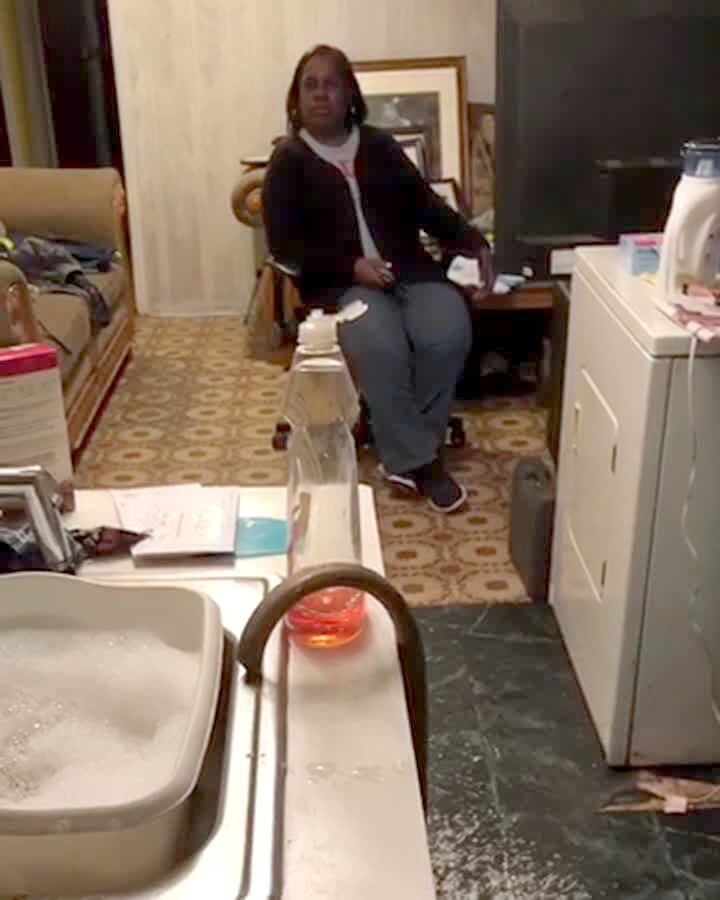 Adorable small dog lays with a man in bed and waves when woman tells him to. Man is asleep.