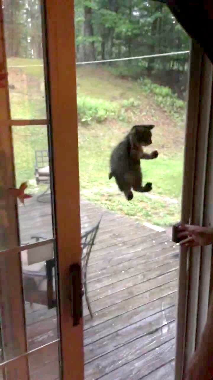A man kicks a hole in the wall as he tries to do a yoga pose while balancing on his head.
