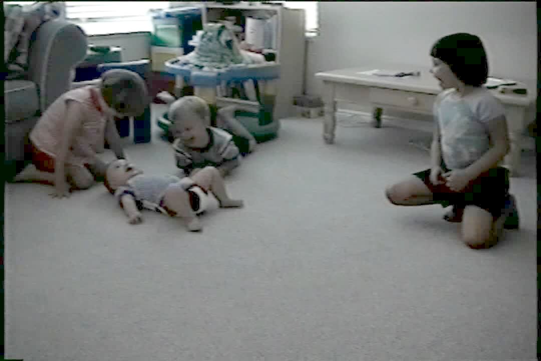 Toddler girl falls asleep on the edge of a couch cushion. Leans forward and falls to the floor, whines a bit then goes back to sleep. See 640520A/W108710 for additional heads.